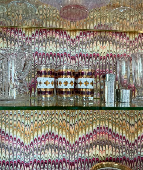 I had some vintage barware that I found on Facebook years ago, but these ruby colored glasses was the perfect find for the space