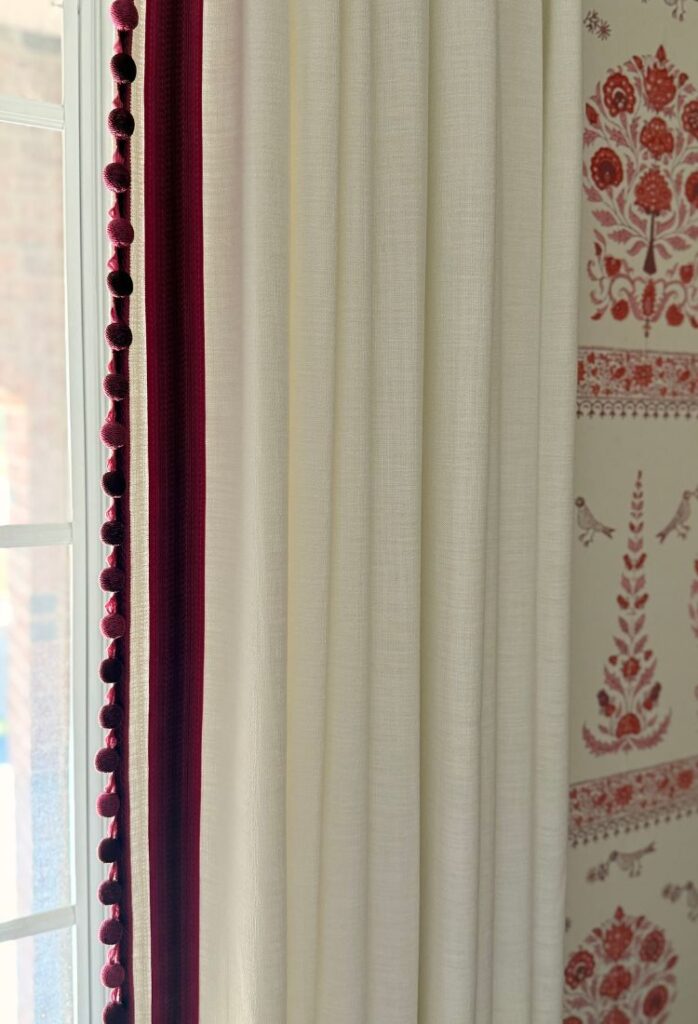 The curtains are from @neutralcurtains, but I dressed them up with a beautiful trim from @samuelandsons. That simple addition made them look completely bespoke, and now they feel perfectly tailored for this room.