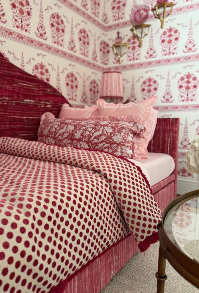 We swapped out the original back pieces of an Amazon trundle bed and replaced them with a fully custom, dome-shaped headboard made by Eric and the difference is night and day. The headboard was made using Kravet Chicattah Rose fabric adding softness and a high-end feel that the original bed simply didn’t have.